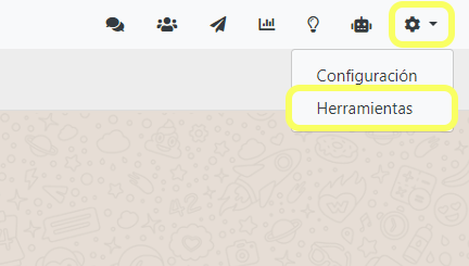 1) Desde la pantalla de chat, hacé click en la tuerca del menú superior, a continuación clickeá “Herramientas”:
