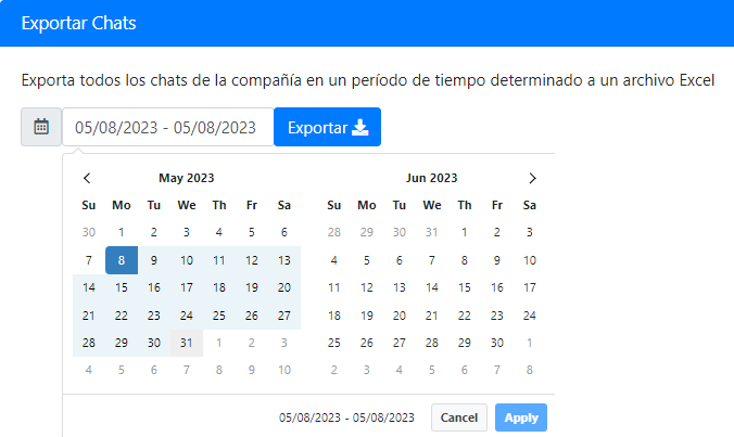 Con Keego Chat es posible descargar en formato csv (Excel) los chats dentro de un período determinado de tiempo. Te mostramos cómo:
