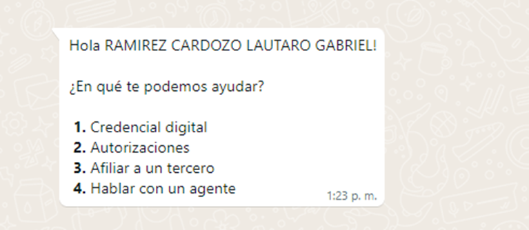 El usuario deberá ingresar el número que corresponda a la opción deseada y el flujo continuará por salida correspondiente.